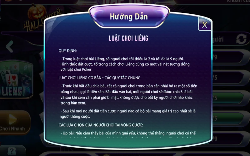 Luật chơi Liêng 789Club tương đối dễ hiểu, đặc biệt phù hợp cho cả người mới. Mỗi ván Liêng có số lượng dân chơi so tài từ 2 đến 6 thành viên. Mỗi người sẽ được chia 3 lá bài và phải tự quyết định hành động như tố, theo, hoặc úp bài dựa vào giá trị bài mình có.