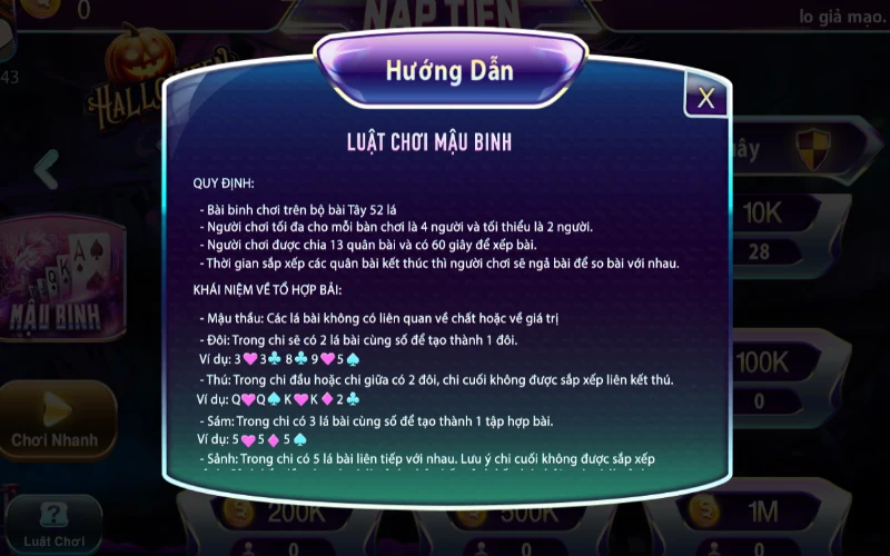 Xếp bài Mậu binh theo thứ tự tăng dần độ mạnh
