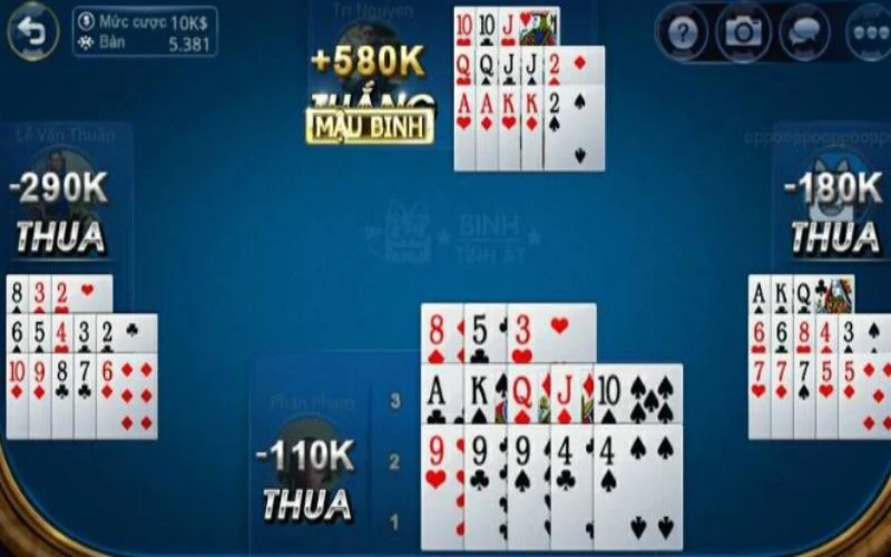 Nếu hội viên không tuân thủ luật sắp xếp Mậu binh 789Club này, bài sẽ bị tính là “binh lủng” và sẽ thua toàn bộ ván chơi. Điều này đòi hỏi người chơi phải tính toán cẩn thận, không chỉ dựa vào may mắn mà còn cả chiến lược rõ ràng.